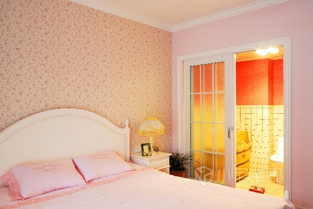 碎花壁紙加上暖色燈光,洗去主人一天的疲勞。