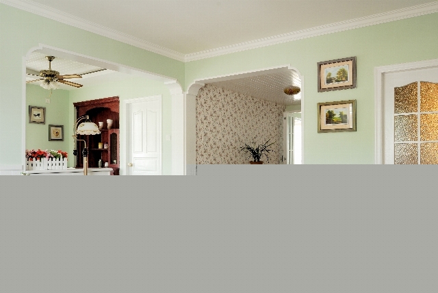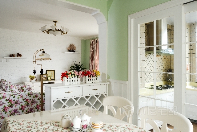 綠色墻面和碎花布紋家具,烘托出空間的品位和溫馨的氛圍。