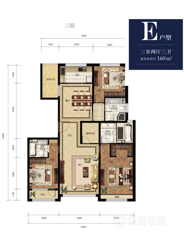 整體色調(diào)比較溫馨、自然,主要體現(xiàn)家具的定制性和實用性。