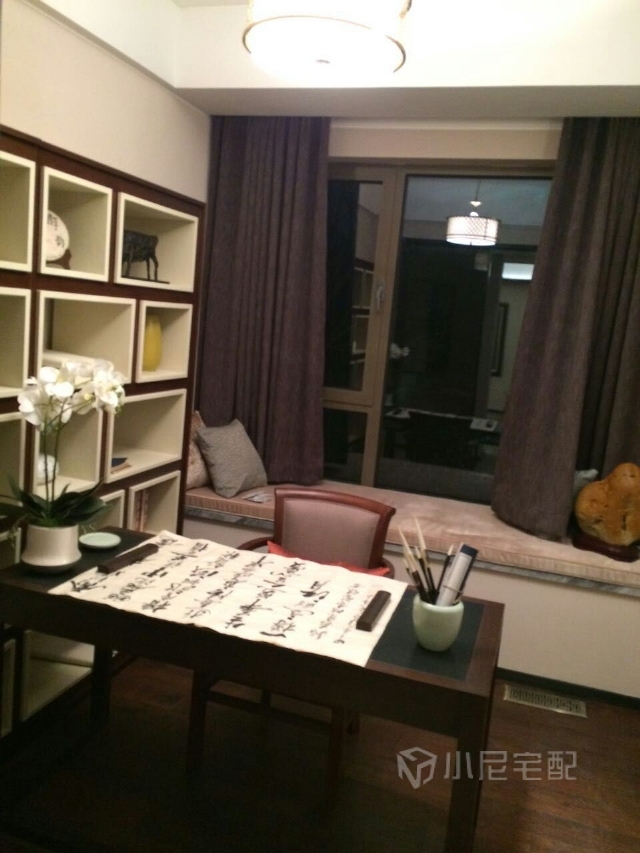 高大尚的整體書桌柜,配上窗臺的榻榻米享受舒適的生活樂趣