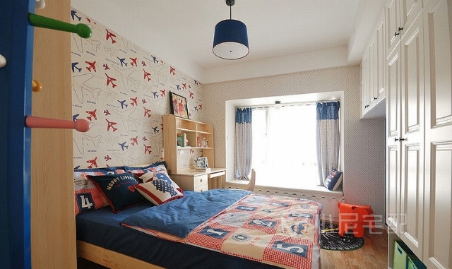 空間跳躍的色彩搭配淺色系的家具,增加了兒童房的活力。