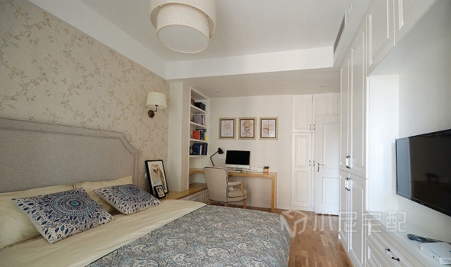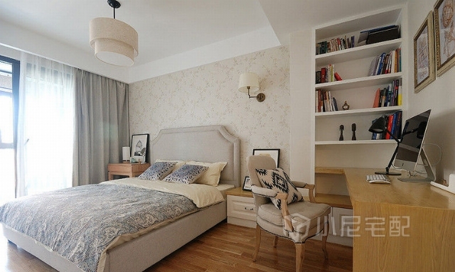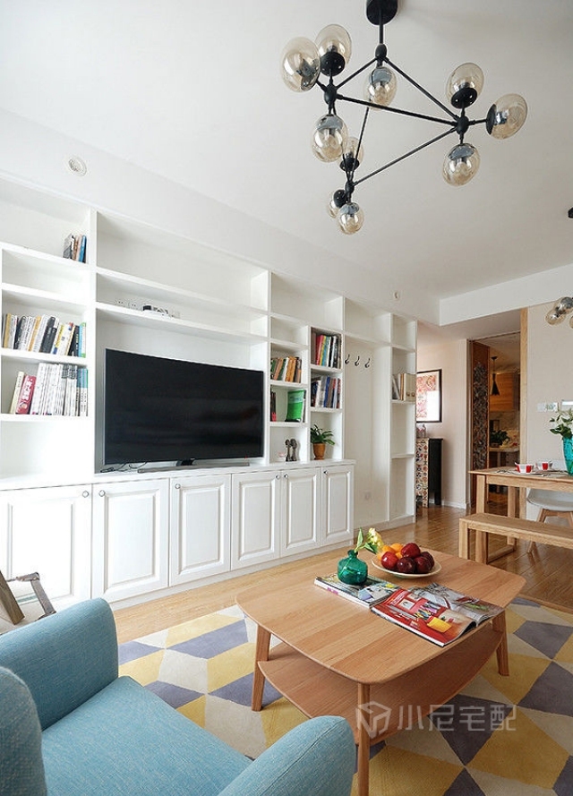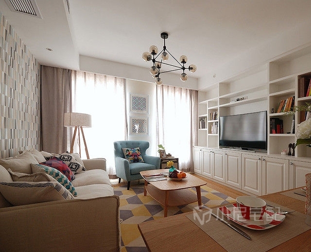 中性色的家具,原木的紋理,抽象的圖形營(yíng)造出恬靜而又輕松,溫馨而又活潑的氛圍。