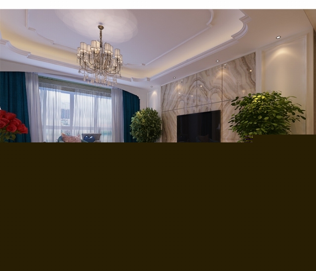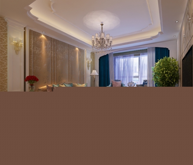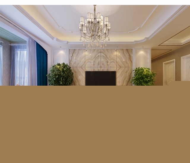 客廳藍色窗簾和水晶燈的搭配讓整體色調(diào)清爽一些。