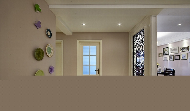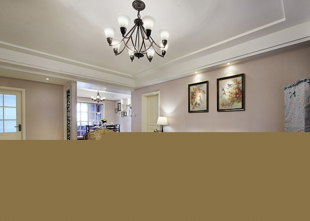 客廳的直線吊燈配以暖色系壁紙營(yíng)造出舒適典雅的感覺(jué)。