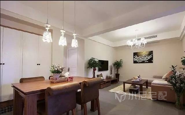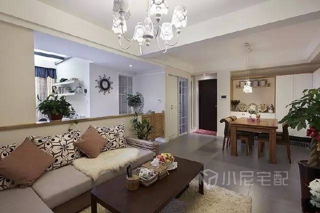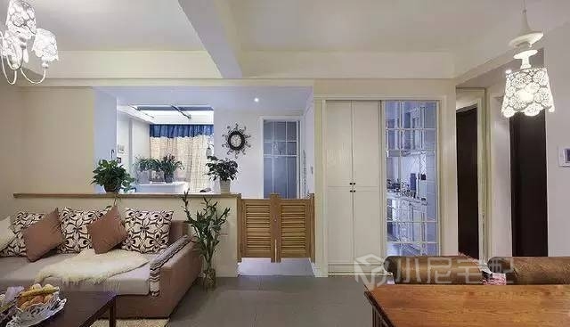 純粹的白色墻面單調(diào)乏味,設(shè)計(jì)師精心挑選了一扇腰門,讓進(jìn)出書房多了一份田園趣味。 客廳與餐廳的家具簡(jiǎn)單而質(zhì)樸,在綠色植物的陪襯下,顯得簡(jiǎn)約、大氣,恰有一份古樸韻味。