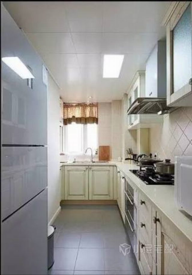 玄關(guān)的右手邊是廚房,做舊的櫥柜門板和菱形墻磚是要打造出田園式的烹飪環(huán)境,好讓心情自由放松。