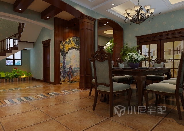 戶型的主人是位在美國生活多年的商人,希望把自己的家充滿復(fù)古的感覺,在本案例中為了凸顯其貴氣與端莊,在美式家具的油漆上,都以單色為主。