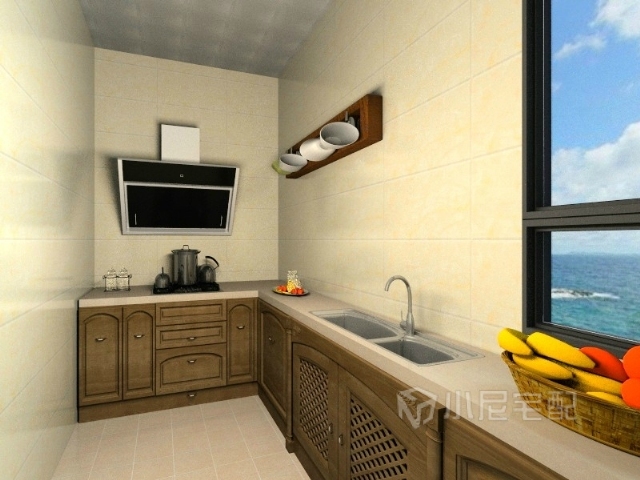廚房采用了L型櫥柜設(shè)計(jì),將各個(gè)角落都利用了起來(lái)。