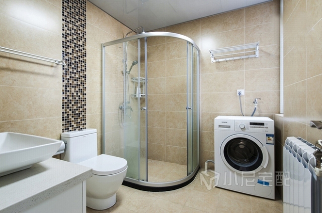 衛(wèi)生間干濕分離,合理的空間利用,把洗衣機(jī)放在衛(wèi)生間,方便也不會(huì)潮濕。