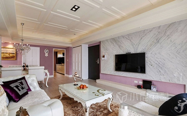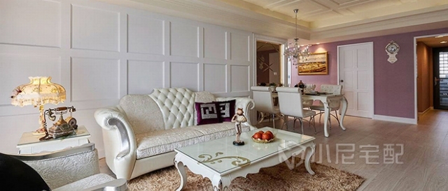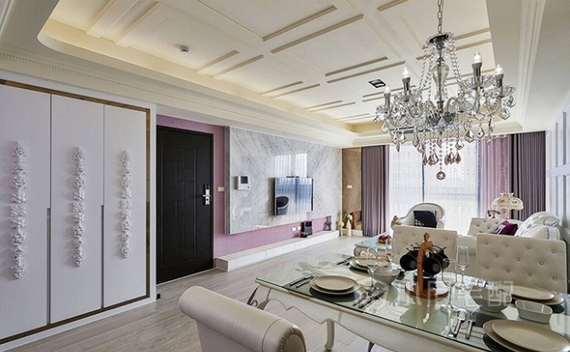 紫羅蘭色與白色搭配出清新浪漫氛圍。同時(shí)又不失高雅。家裝家具一體價(jià):14萬(wàn)。
