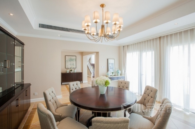 深色的大圓桌和米白色的墻壁,高貴而典雅。
