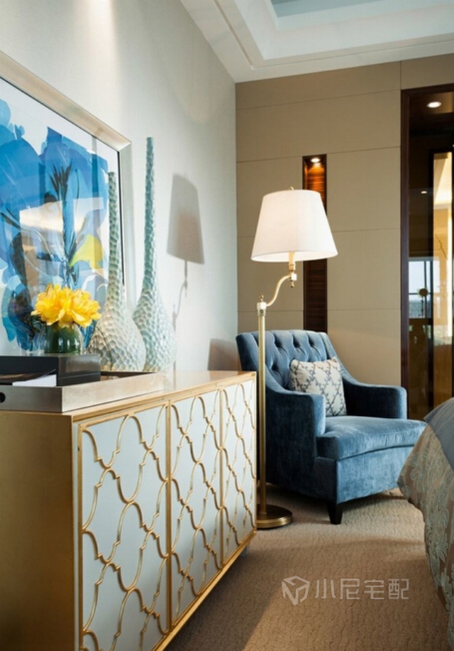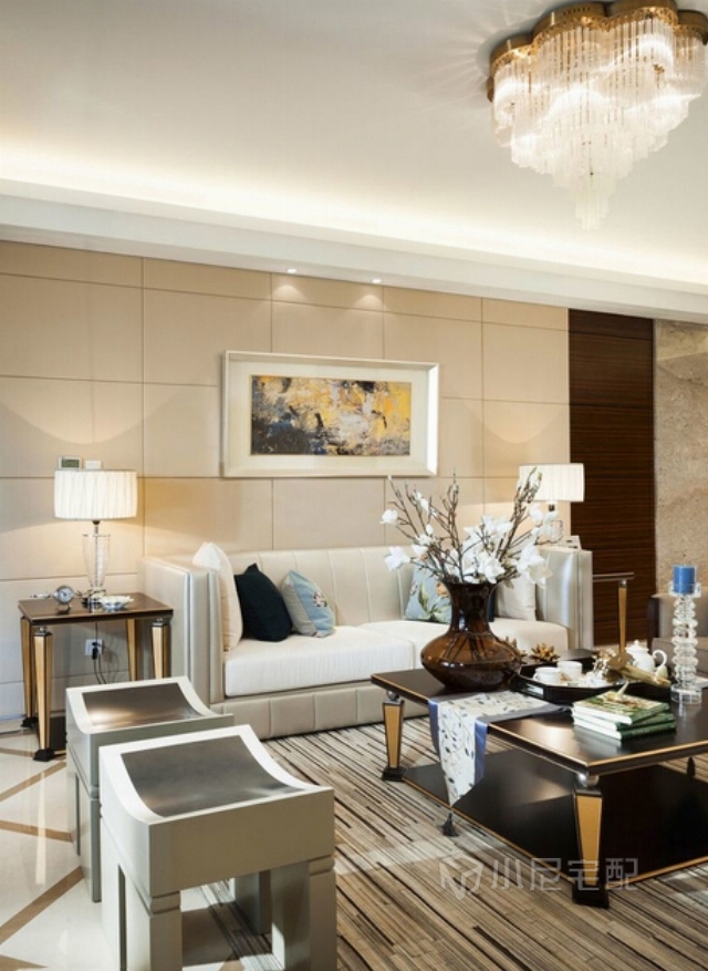 設計師運用快樂的色彩、摩登的藝術品以及裝飾藝術的不同手法,為崇尚前衛(wèi)和自由的男女主人打造了一個充滿夢想且氣質不俗的家。 在配飾陳設上,設計師充分運用縝密而細膩的木,加上棉麻、絨布、皮質等各種材質的組合。整個空間不因家具的純正深色感到壓迫和沉重。銅制的藝術品、玻璃的擺件、陶瓷的瓶罐等,營造出深淺變化的剔透空間與生活品質。祥云的元素的融入將西方優(yōu)雅與東方靈性相糅合,而極具時尚魅力的波普紋樣組合,在情緒交錯、花紋橫陳的靡靡氛圍中,生命也展露出妖冶的一面。
