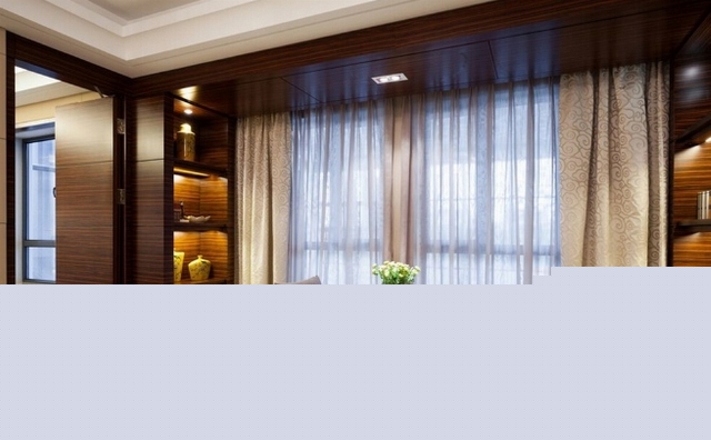 在配飾陳設上,設計師充分運用縝密而細膩的木,加上棉麻、絨布、皮質等各種材質的組合。整個空間不因家具的純正深色感到壓迫和沉重。銅制的藝術品、玻璃的擺件、陶瓷的瓶罐等,營造出深淺變化的剔透空間與生活品質。