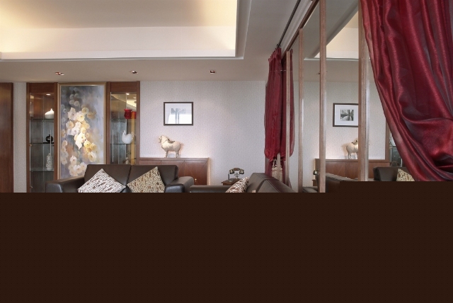 端莊大氣的客廳,以黑色和紅色為主。格調(diào)高雅,造型簡(jiǎn)樸優(yōu)美,色彩濃重而成熟。
