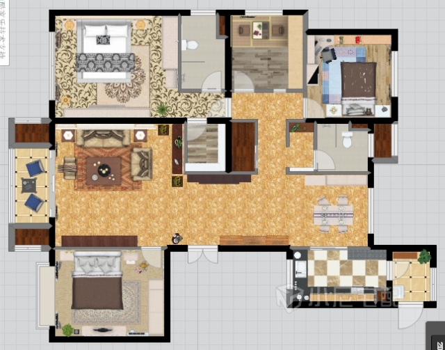 本案例以淺色為主深色為輔。相對于濃厚的歐洲風(fēng)格,簡歐風(fēng)格為清新、符合中國用戶內(nèi)斂的審美觀念。而且秉承了時(shí)尚、環(huán)保的理念,使用的家具全部要達(dá)到E1級。家裝家具一體價(jià):20.3萬。