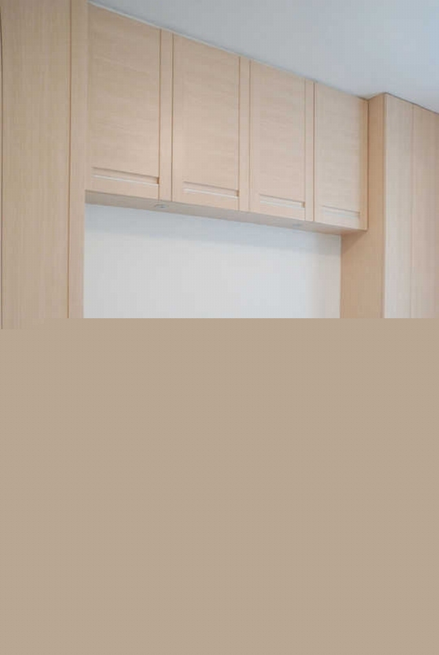 臥室不僅僅是休息的空間,同時可以在床頭增加一整排的吊柜,充分提高了儲物收納空間。