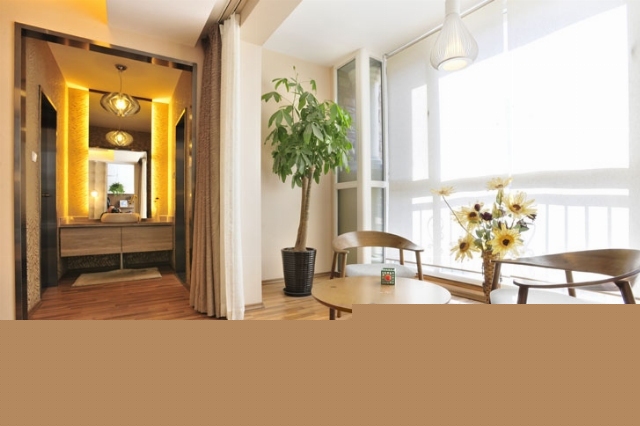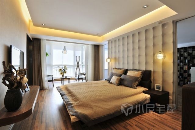 用窗簾代替隔離門,打通了臥室與陽臺間的隔離。