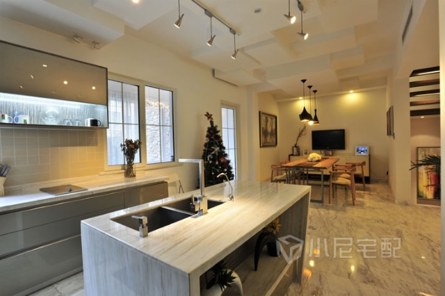 開放式廚房增加了空間的通透感。