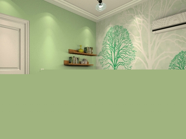 電視背景墻的一抹綠色墻紙給整個(gè)不大的空間帶來了生機(jī)。