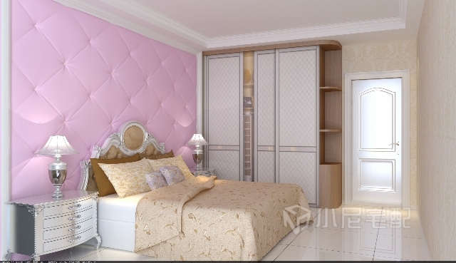 床頭背景采用了粉色的軟包,整個(gè)房間既溫馨又浪漫!