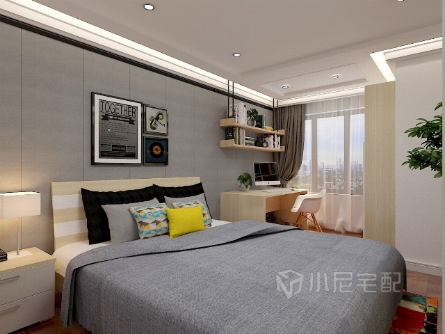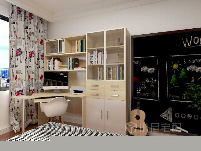 次臥室的書房和電腦桌簡(jiǎn)約但不簡(jiǎn)單,給人的感覺是簡(jiǎn)單、大方、舒適、清爽的感覺,顏色的運(yùn)用采用淡色系列為主,這樣簡(jiǎn)約風(fēng)格的環(huán)境,給人感覺非常的舒服。讓我們從簡(jiǎn)約開始,開啟讀書時(shí)代。旁邊的吉他顯示出小主對(duì)音樂的喜愛。