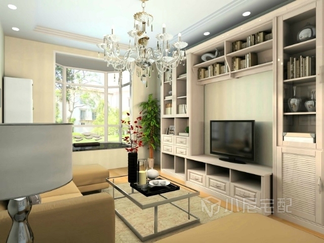 用簡單的電視柜裝飾了的客廳給人簡潔大方的感覺