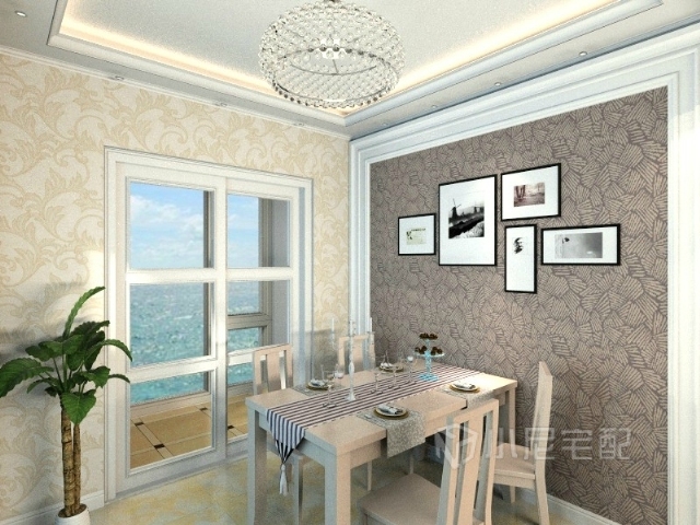 餐廳簡單裝飾畫加小尼宅配餐桌恰到好處