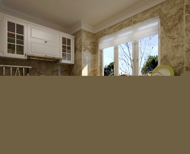 吸塑材質(zhì)的櫥柜造型很好的搭配了整個裝修的簡歐風(fēng)格