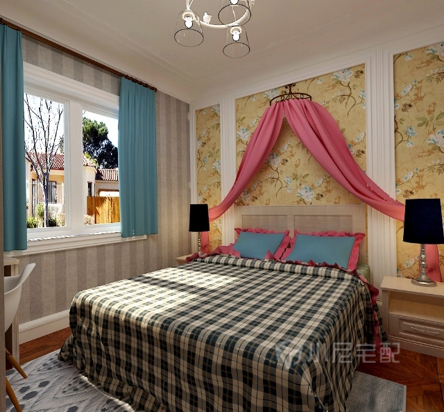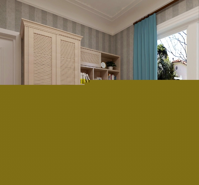 木紋的衣柜書桌跟藍(lán)色的窗簾凸顯了整個倫敦小鎮(zhèn)的風(fēng)格