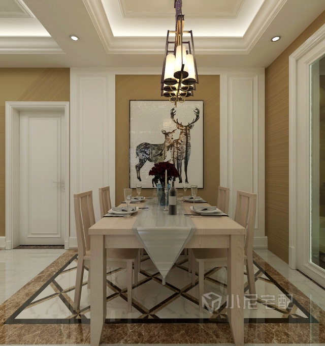 本套方案是簡歐風(fēng)格 ,木紋家具跟中性色系的墻面搭配、加上簡單而不簡約的沙發(fā)餐桌讓整個空間顯得高大上