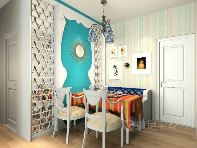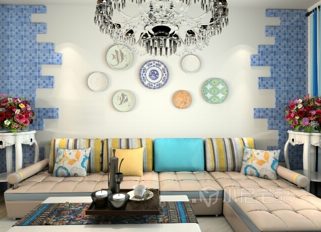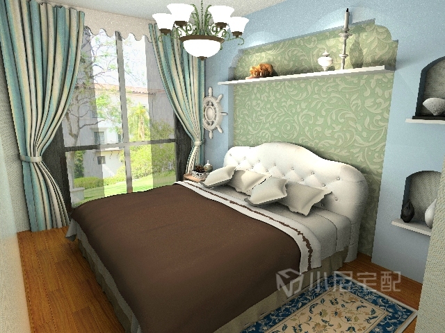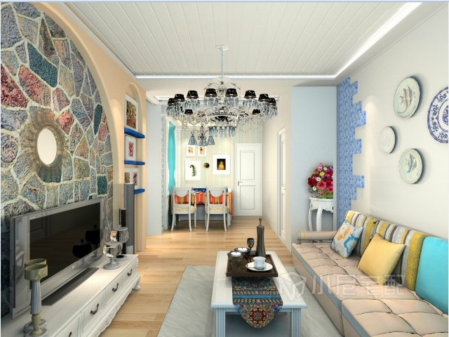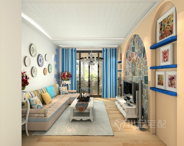 以海洋的蔚藍色為基色調(diào)的顏色搭配方案,自然光線的巧妙運用,富有流線及夢幻色彩的線條等軟裝特點來表述其浪漫情懷。