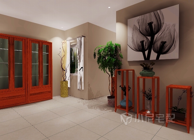 壁畫(huà)和花架的擺放讓本來(lái)略顯尷尬的位置卻讓人眼前一亮。