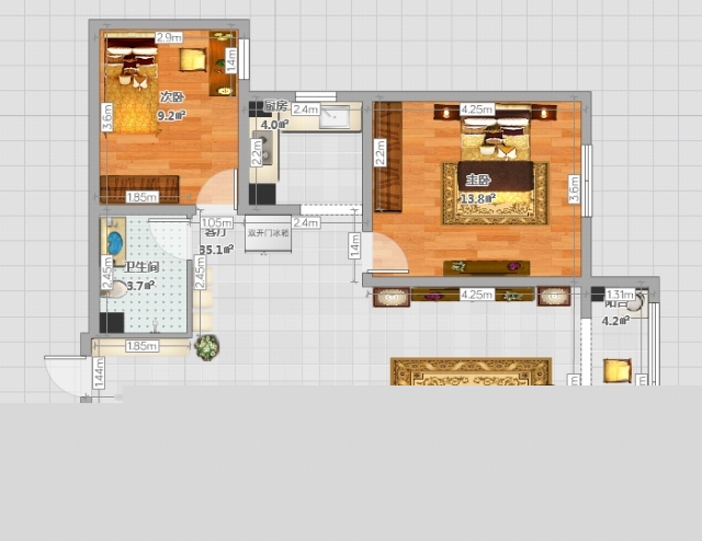 有效的利用榻榻米和矮柜進(jìn)行了合理的空間利用。