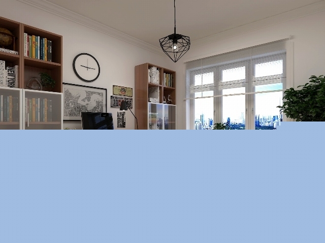 電視背景墻依然是白色與原木色的搭配,墻上的書架安然隨意,以后也可以擺放一些裝飾品或者照片在上面,都會成為這個(gè)空間的點(diǎn)綴。