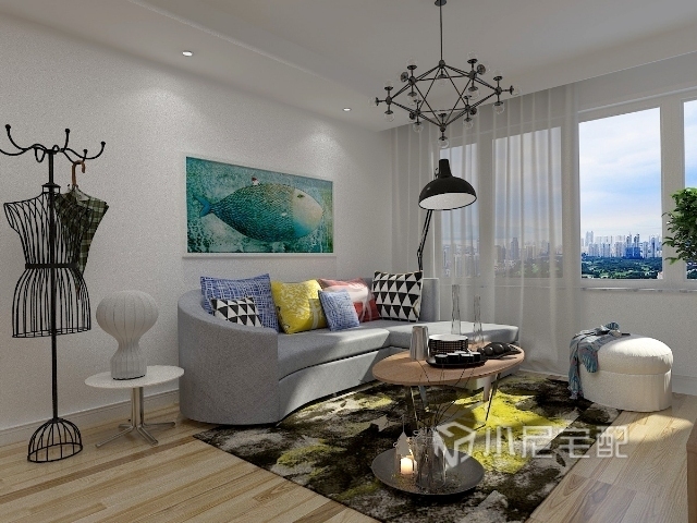 客廳白色墻面,原木色地面,用幾處顏色點(diǎn)綴一下。簡約卻不簡單,而且溫馨。
