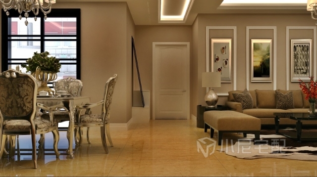 客廳一派優(yōu)雅恬適,電視背墻以大理石來演繹貴氣。