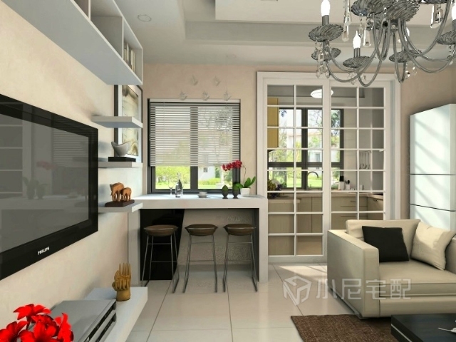 餐桌設(shè)置為吧臺(tái)樣式,位于窗口,便于節(jié)省空間,用餐同時(shí)觀景更顯愜意。