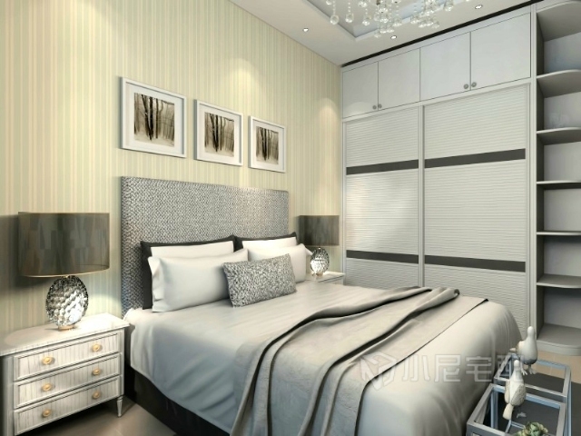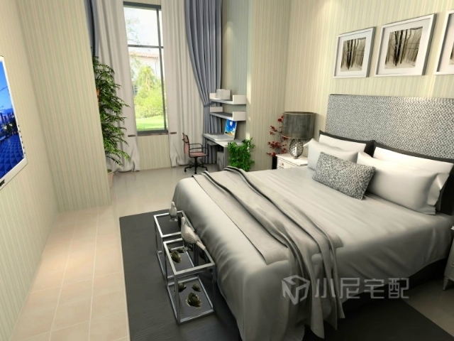 主臥:現(xiàn)代簡約的布置,溫馨的色調(diào)。
