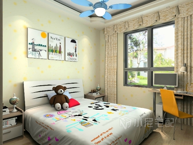 臥室整體給人溫馨的感覺,簡單的吊頂,暖色的墻面,相信會有一個美好的夜晚。