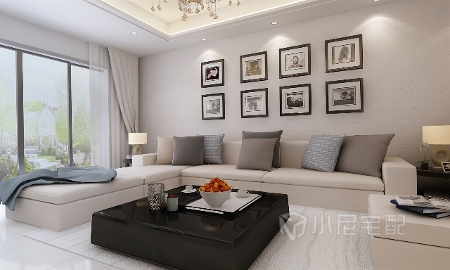 白色的沙發(fā),黑色的茶幾使整個(gè)客廳顯得沉穩(wěn)大氣,個(gè)性的裝飾畫(huà)與整個(gè)空間融合統(tǒng)一。