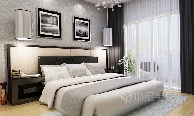 實(shí)木的床頭柜,皮質(zhì)的床頭,金屬感的燈具,多樣的材質(zhì)使臥室更加豐富。