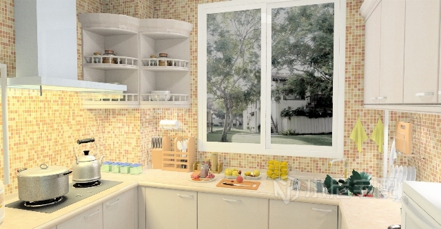 U字形廚房,色調(diào)溫馨,布局合理