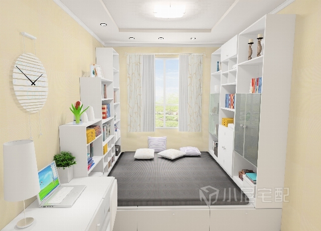 榻榻米的書房,豐富的儲(chǔ)物空間,書架、書桌,既是書房又是臥室,