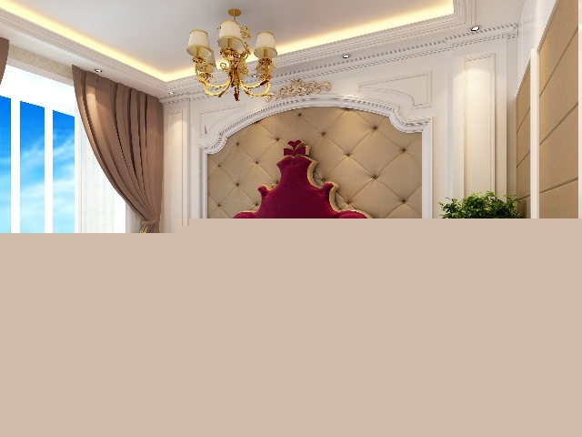 主臥主體顏色是紅色配金色,大氣而溫暖,雍容而華貴。