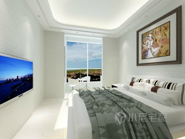 主臥室空間充足,可以分為兩部分,在陽(yáng)臺(tái)區(qū)域增加休閑的桌椅