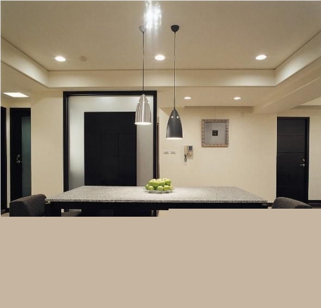 經(jīng)過了城市一天喧囂、紛擾,木皮與壁紙構(gòu)筑出的深色調(diào)沉穩(wěn)。