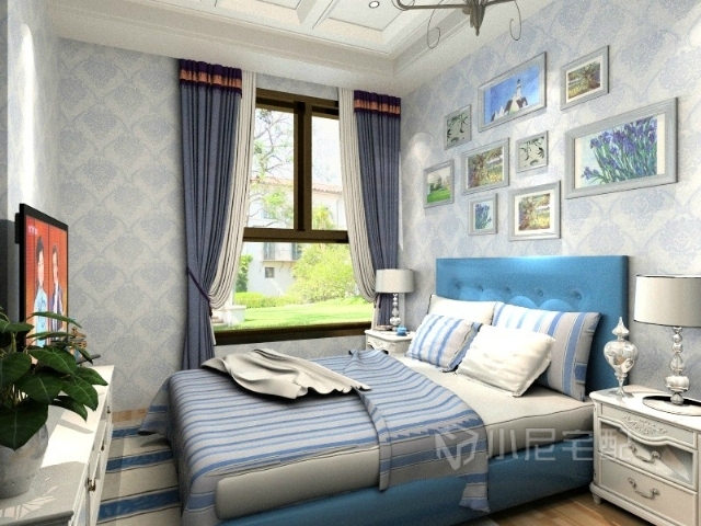 窗簾和床單相互照應(yīng)
