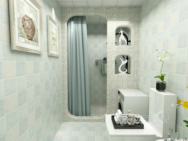 色調(diào)清新自然的衛(wèi)生間,以干濕分區(qū)的形式來(lái)表現(xiàn),整體陶瓷衛(wèi)浴。方便使用,同時(shí)也增加了空間感。