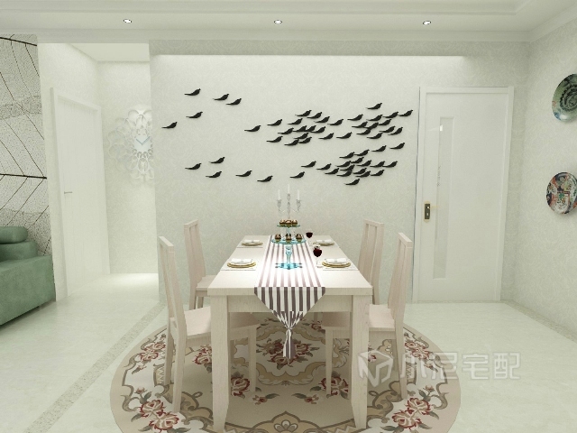 餐廳的布局以簡(jiǎn)單明了為主題,布置了淺色的餐桌椅,特色的墻飾以其生動(dòng)的造型,使用餐桌區(qū)更貼近大自然的動(dòng)感。田園風(fēng)格的餐具在工藝上鑲有花邊或凹凸紋樣的,其中骨瓷因?yàn)橘|(zhì)地細(xì)膩光潔而深受推崇,除了餐具外,花瓶、瓷器等在田園風(fēng)格的家居也非常多見(jiàn)。