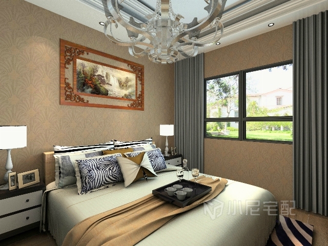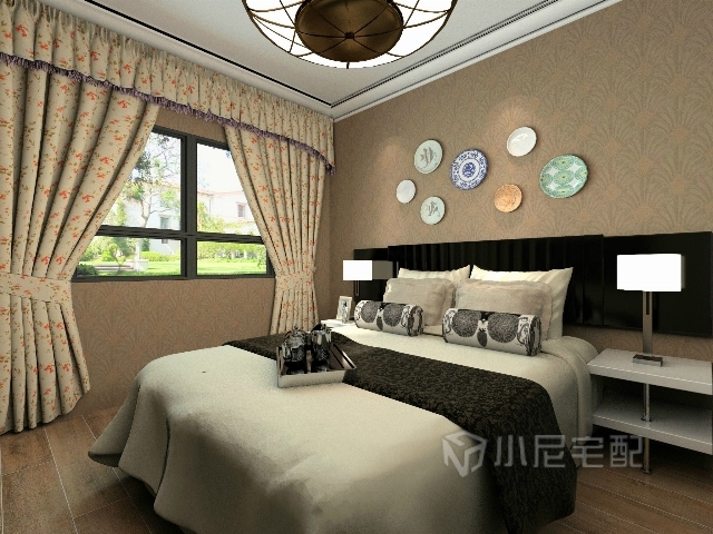 韓式家居的臥室布置較為溫馨,作為主人的私密空間,主要以功能性和實(shí)用舒適為考慮的重點(diǎn),一般的臥室不設(shè)頂燈,多用溫馨柔軟的成套布藝來裝點(diǎn),同時(shí)在軟裝和用色上非常統(tǒng)一。